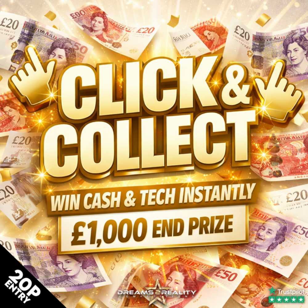 Welcome to our “Click & Collect” Competition where you can win cash& tech instantly from the moment you purchase your tickets