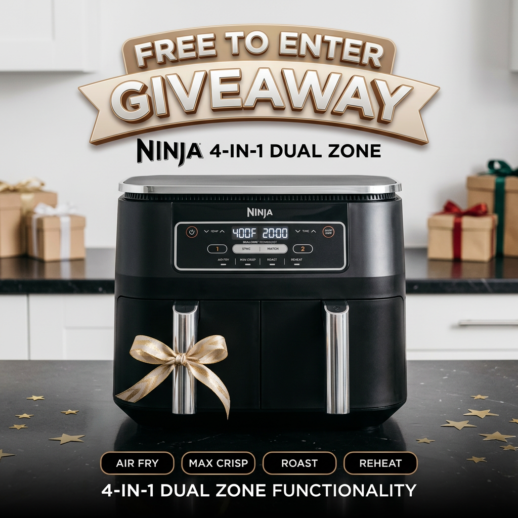 The winner of this free to enter competition will win a Ninja Foodi 4-in-1 Dual Zone AF200UK Air Fryer.
