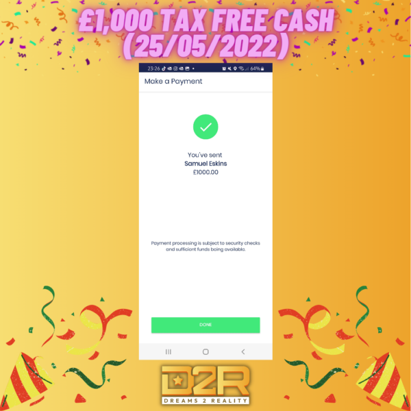 Win £1000 Tax Free Cash! (25/05/2022)