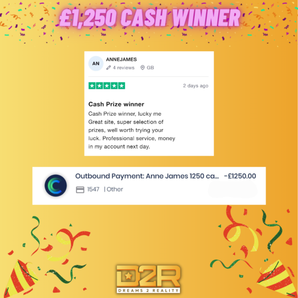 OVER £13 MILLION GIVEN TO OUR WINNERS 🎉 | 10,000+ 5 STAR REVIEWS 🌟 | BIG PRIZES WON EVERY DAY! 🎁
